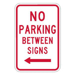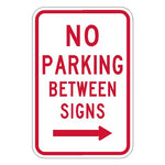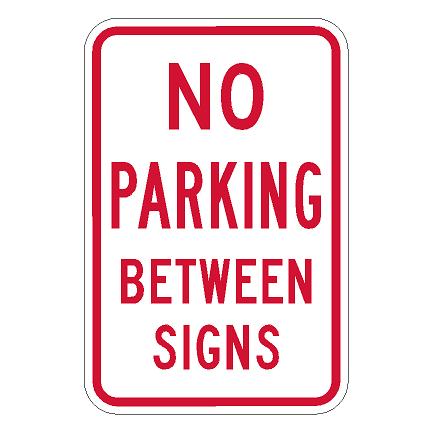 3M .080 Aluminum (Other options available) R7-12 No Parking Between Signs R7-12AL No Parking Between Signs <-- R7-12AR No Parking Between Signs -->